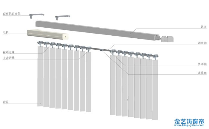 電動垂直簾,隨意轉向180度,光線自然和諧,簾片垂直、平整、間隔均勻,線條整潔明快,裝飾效果極佳。布垂直簾具有抗老化、不褪色、隔熱、隨意調節光線等特點。鋁合金、PVC垂直簾具有易清洗、耐腐蝕、阻燃等特點。